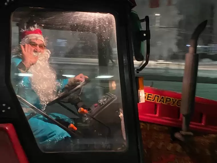На улицах Нижнекамска был замечен Дед Мороз - водитель снегоуборочной техники.