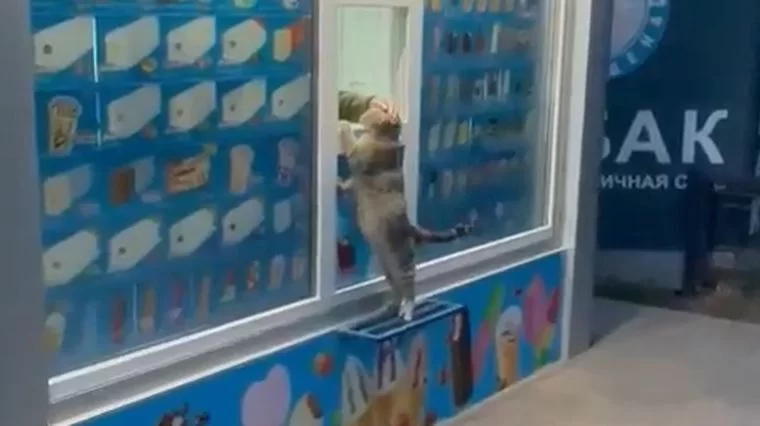 Прохожие стали свидетелями того, как кошка забралась к окну киоска, правда, вместо холодного лакомства получила только поглаживание. Случай произошел на проспекте Химиков около 21-го дома.