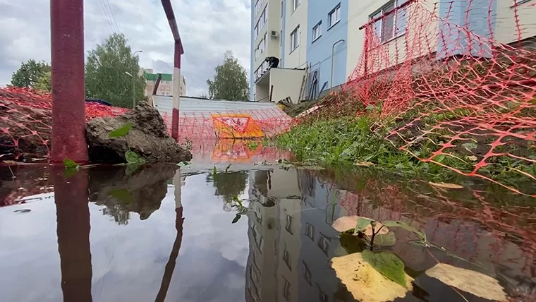Ещё весной у них во дворе проводили замену труб и, несмотря на то, что порывы устранили быстро, следы работ здесь так и остались.