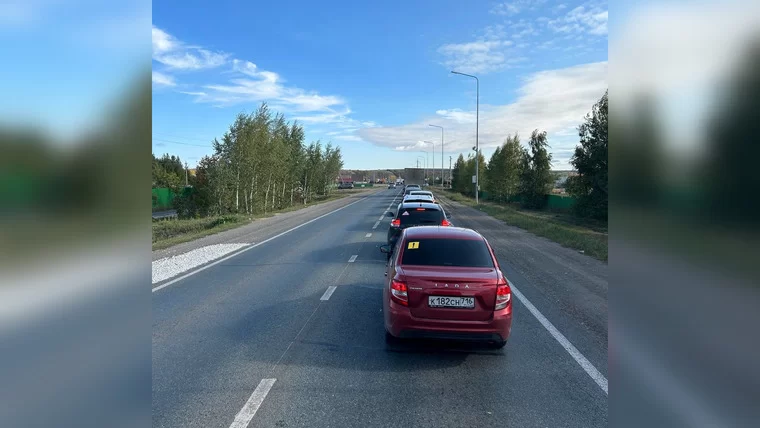 Во вторник днем под Нижнекамском образовалась многокилометровая пробка.