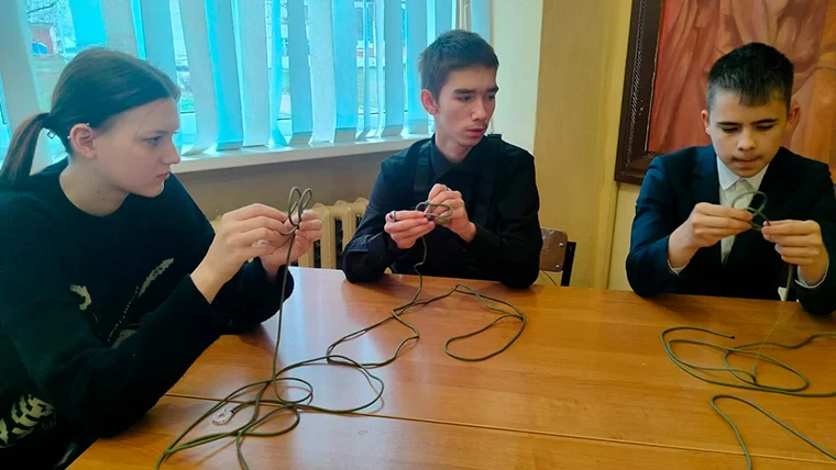 Как рассказала советник директора по воспитанию, ребята плетут браслеты из паракорда. Длина одного браслета составляет 3-4 метра.
