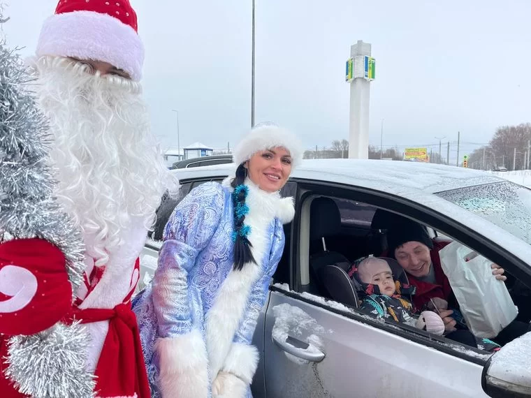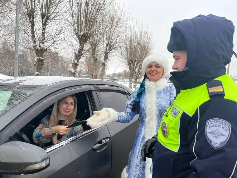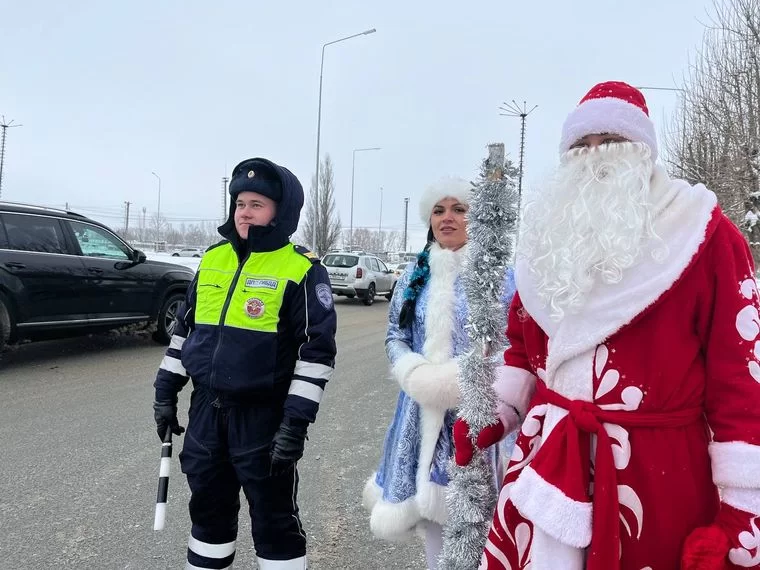 В Нижнекамске полицейский Дед Мороз и Снегурочка совместно с инспекторами ГИБДД поздравили с наступающим Новым годом автомобилистов.
