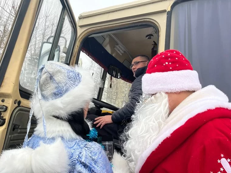 Новогодний патруль останавливал водителей и вручал небольшие подарки и памятки по безопасности дорожного движения.