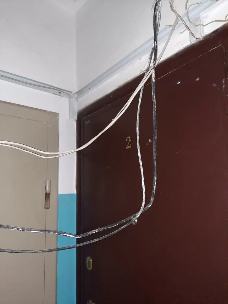 На снимках видны висящие провода, выдернутые лампочки и выключатели, а также дверной звонок. По словам горожанки, это дело рук закладчиков. При этом адрес дома она не указала.