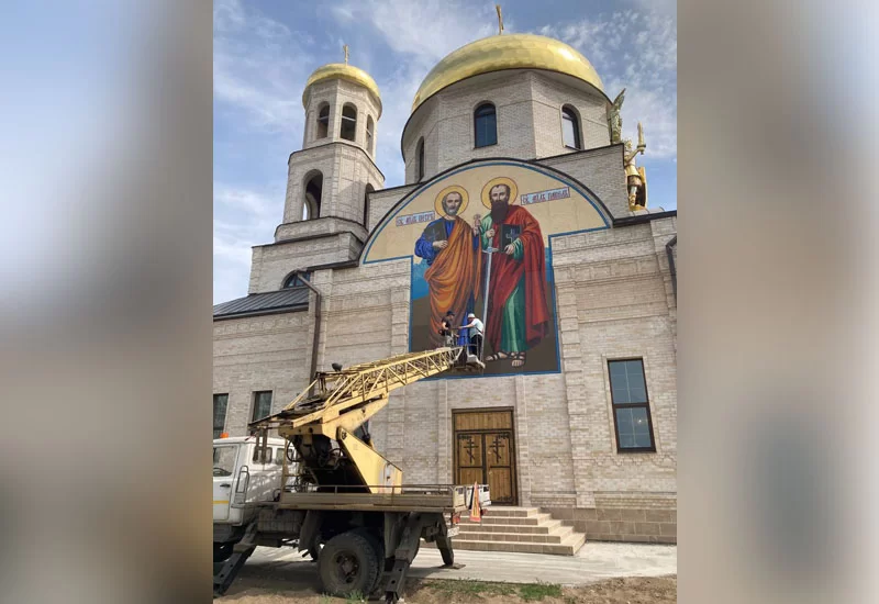 Более ста тысяч плиток, семь метров в высоту и восемь метров в ширину. На здании храма Воскресения Христова установили большую мозаику.