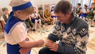 Юные солдаты в гимнастерках, моряки и морячки гордо заходят в зал, пытаясь разглядеть среди гостей самых близких мужчин. К празднику «Дал присягу — назад ни шагу!» воспитанники старшей группы детского сада № 39 подготовились серьезно!