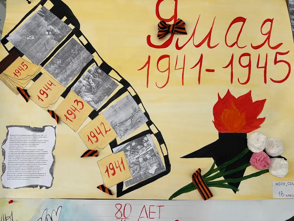 В честь Дня Победы в школе № 9 организовали творческий проект «Дети рисуют Победу». В нём ребята наглядно показали, что для них значит праздник и как они гордятся бессмертным подвигом своих предков.