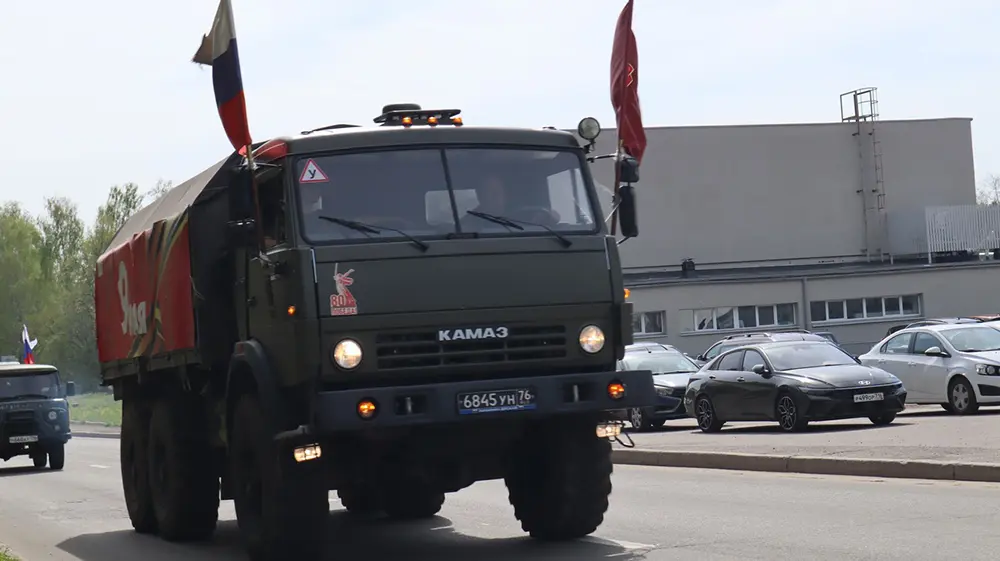 Колонна, оформленная в военной тематике и с флагами, в сопровождении автомобилей Госавтоинспекции, направилась по маршруту к памятным местам наших земляков, прошедших Великую Отечественную войну.