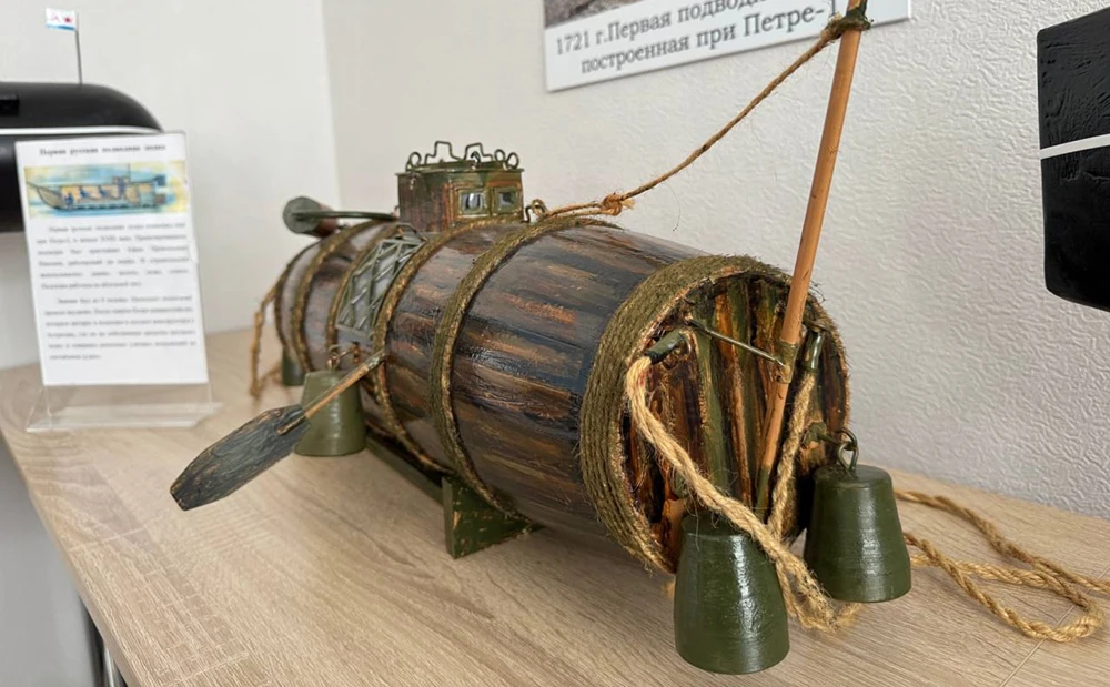 Сам мужчина службе в подводном флоте отдал три года, потому и решил организовать на предприятии такую экспозицию. Экипировка водолазов и многочисленные макеты подводных лодок, начиная с самой первой, которая больше была похожа на бочку, а еще научные и боевые подлодки разных эпох, воссозданные в мельчайших подробностях. Одна из них та, на которой и служил мичман Хабибуллин: