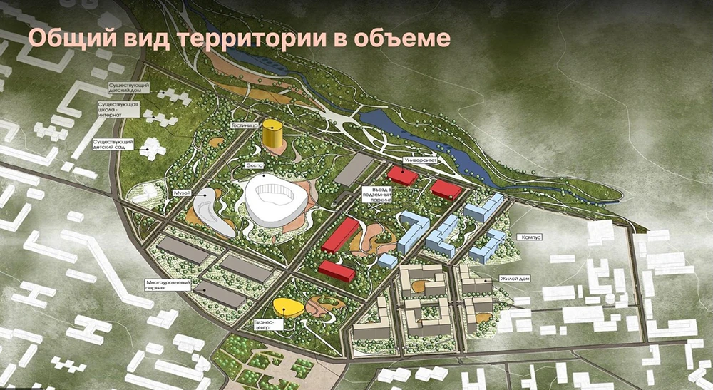 Планы, как и сама площадь территории, масштабные: 110 тысяч кв. м комфортного жилья, университет ОЭЗ «Алабуга», бизнес-центр класса «А», гостиница на 200 номеров и экспоцентр площадью в 10 тысяч кв. м.
