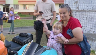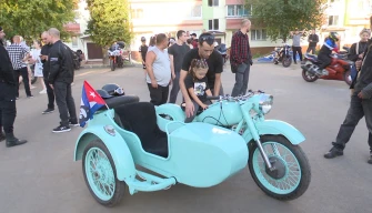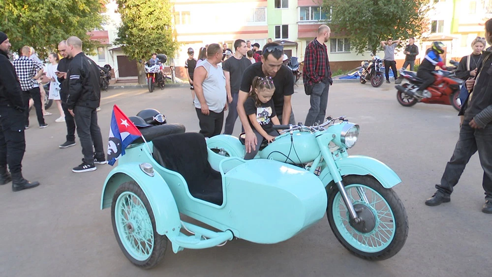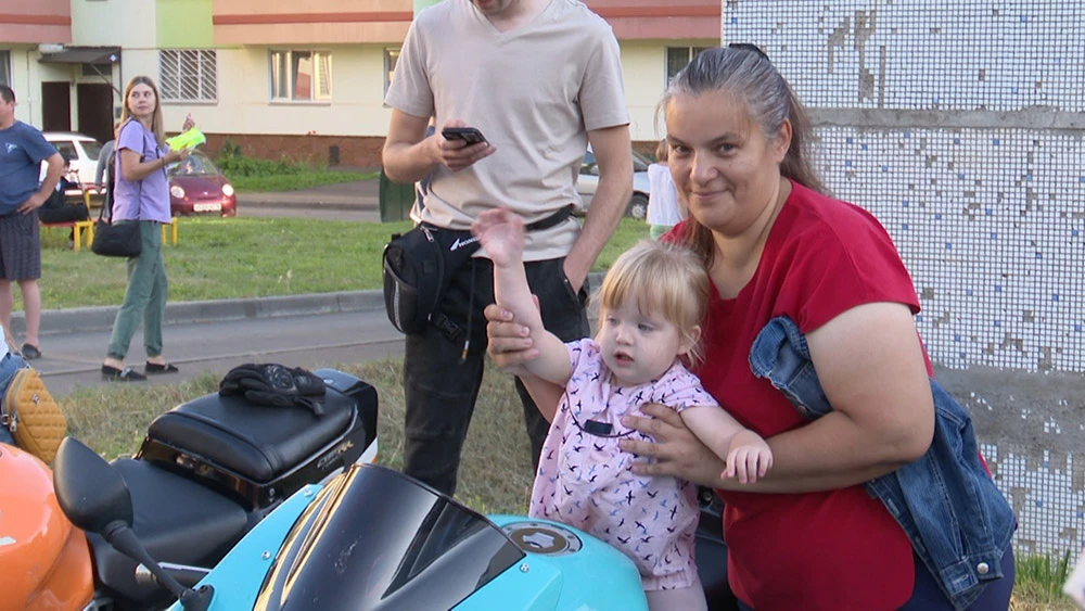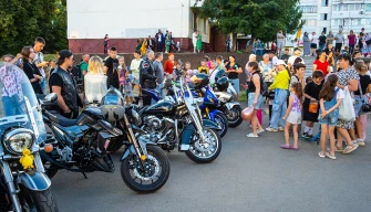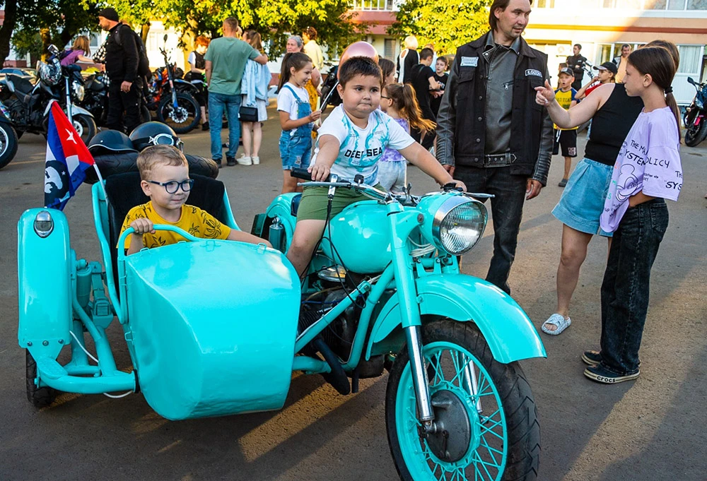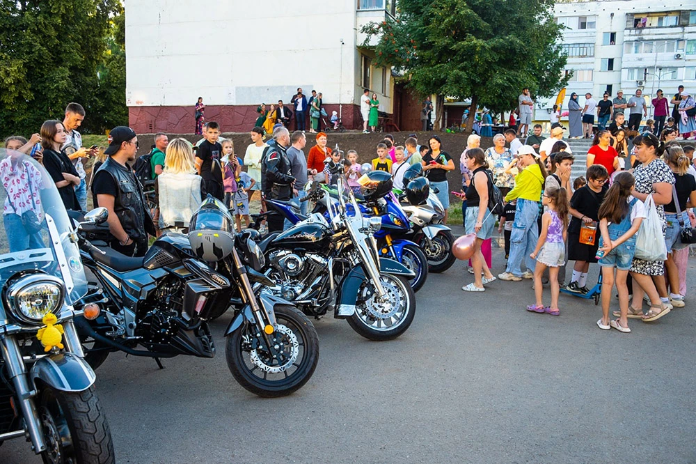Наш диалог прервал рёв мотоциклетных моторов. Во двор приехали самые настоящие байкеры и тут уже и для взрослых праздник начался. Наперебой горожане фотографировались на железных конях.