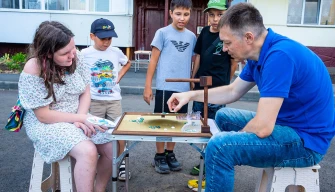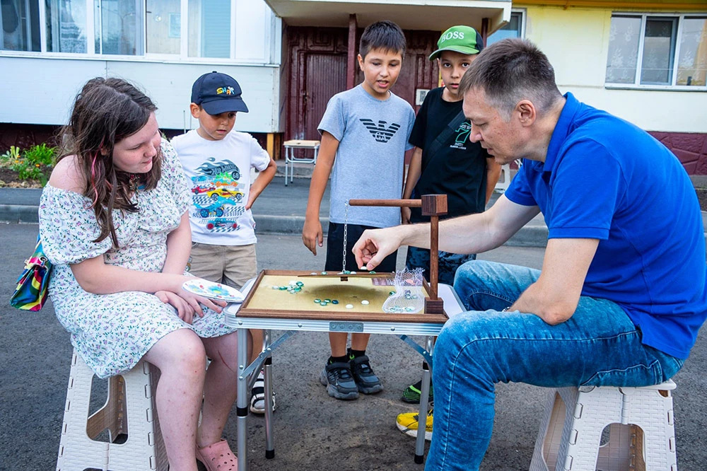 Пока взрослые наслаждались выступлением самодеятельных артистов, для детей был организован десяток «пятачков» с разными активностями. На одной из многочисленных точек детям достаточно было заполнить анкету и крутить лототрон. Без приза никто из ребятишек не остался.