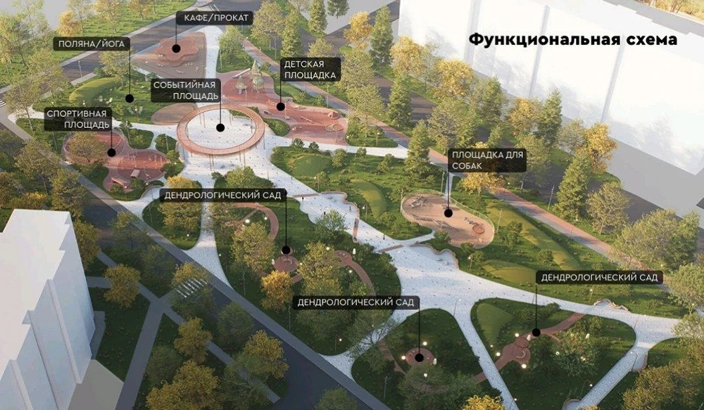 Проектом, который презентовал главный архитектор города Эмиль Сиразетдинов, также предусмотрены спортивная и детская площадки: «Здесь предусмотрено место под инвестиционный проект — возможно появится ресторан, объединённый с прокатом велосипедов, самокатов или другого оборудования. Должны быть санузлы. В правой части планируется дендрологический сад, в который войдет тихая зона отдыха для семейных прогулок».