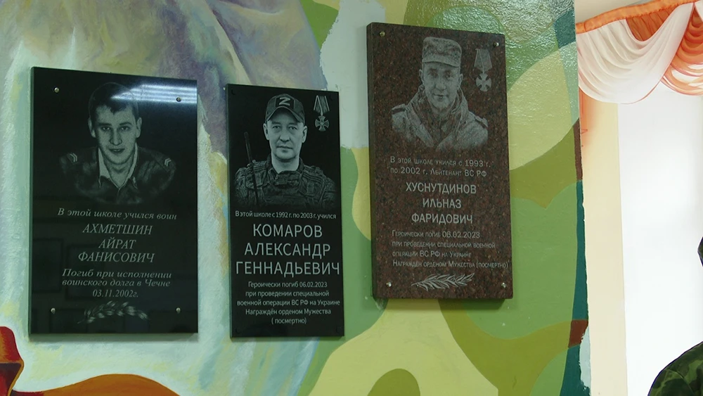 Здесь трепетно чтут своих выпускников, отдавших жизнь ради того, чтобы у нас было мирное небо над головой. Они — гордость родной школы — Сергей Малыхин, Айрат Ахметшин и наш Саша Комаров, погибший в зоне СВО в начале 2023 года. Каждому из них здесь посвящена мемориальная доска.