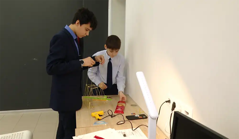 Конкурс прошёл в лицее № 24. Участники строили башни из спагетти и клея за три часа. Победу одержали Нурсултан и Амир — высота их конструкции составила 98 см.