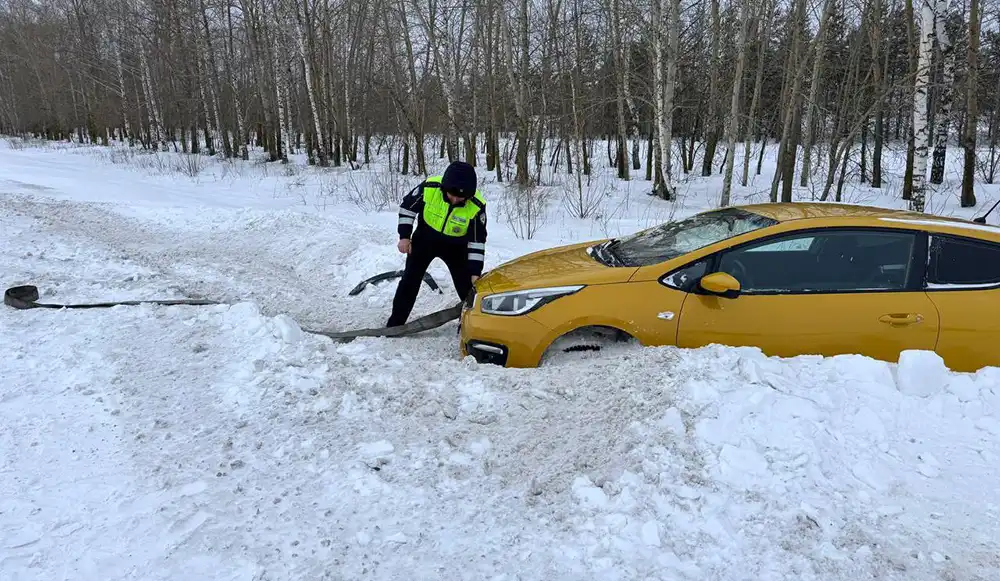 Экипаж ДПС заметил съехавший с дороги автомобиль «КИА». Инспекторы остановили проезжающий грузовик и попросили водителя помочь вытащить машину. Убедившись, что транспорт исправен, сотрудники продолжили несение службы.