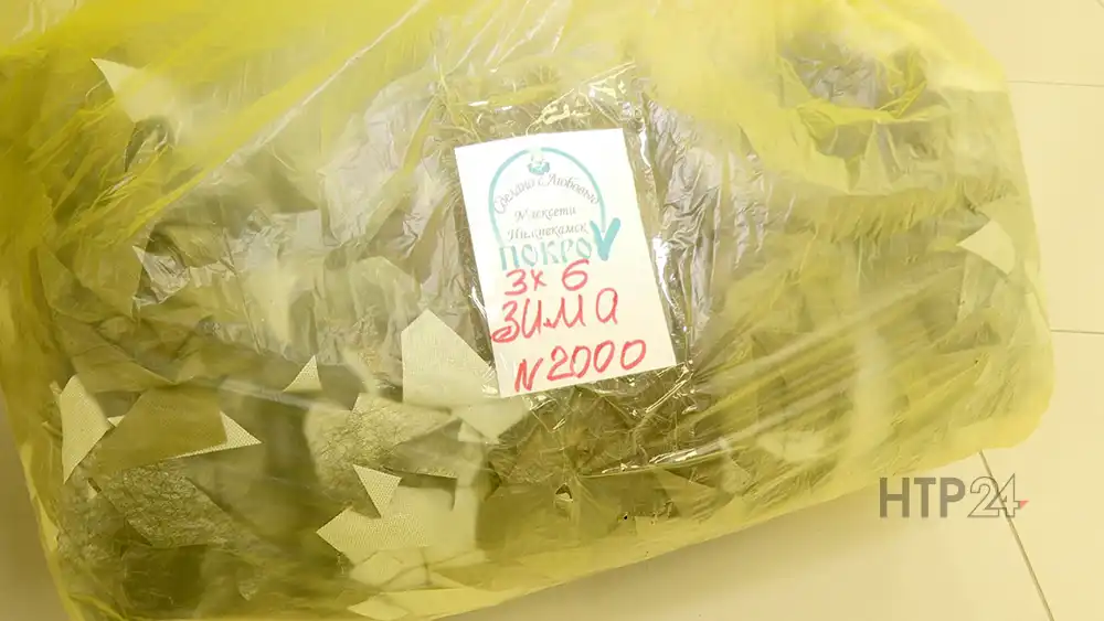 На большом мешке этикетка с надписью «3×6. Зима. № 2000». Внутри маскировочная сеть, которую сплели волонтёры группы «Покров». Вскоре она отправится нашим бойцам на передовую.