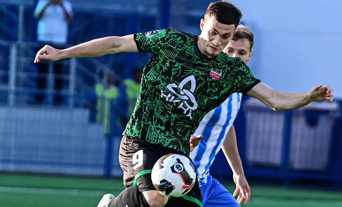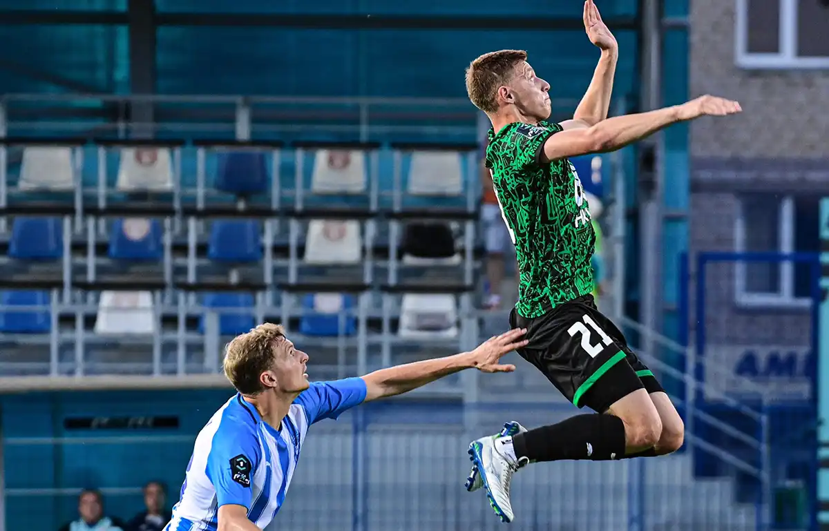 Спустя десять минут момент появился у Ивана Бобра, вратарь «Сокола» выручил. А на 23-й минуте нарушили правила в своей штрафной. Пенальти. Машуков не дрогнул, пробил на паузе — 0:2.