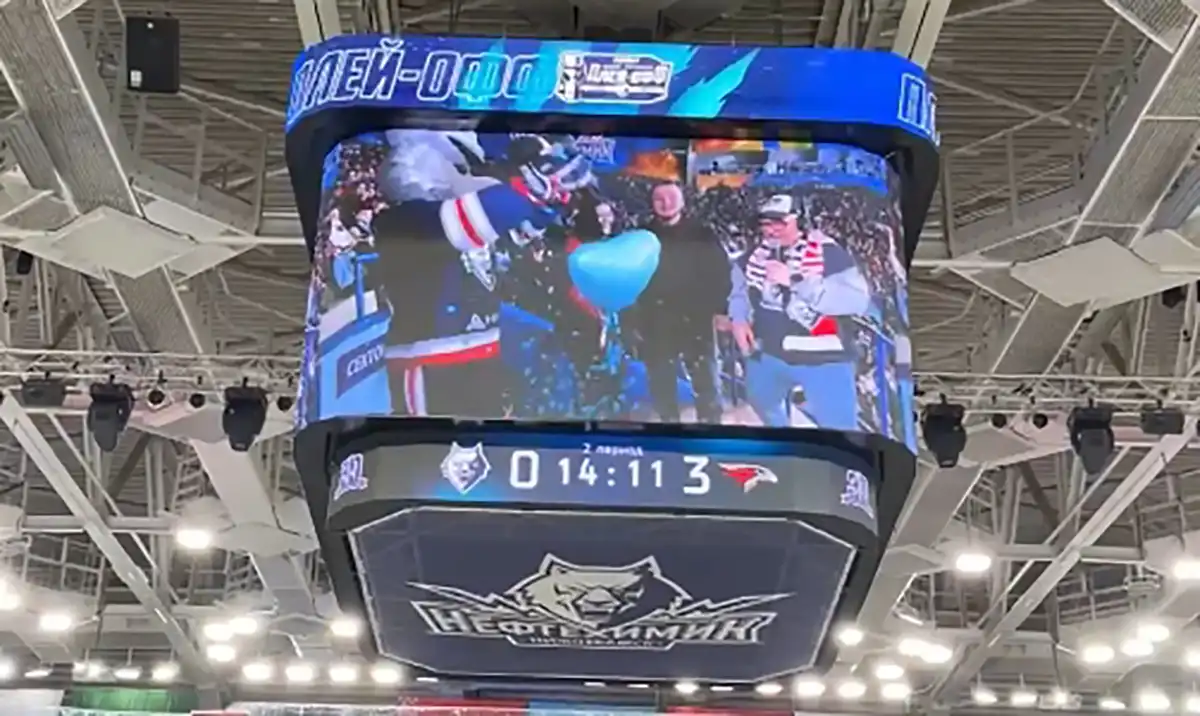 Гендер-пати прошло во время матча плей-офф, в котором «Нефтехимик» принимал омский «Авангард». Большой чёрный шар лопнул маскот команды Волк, внутри оказалось сердце голубого цвета — у молодых родится мальчик.