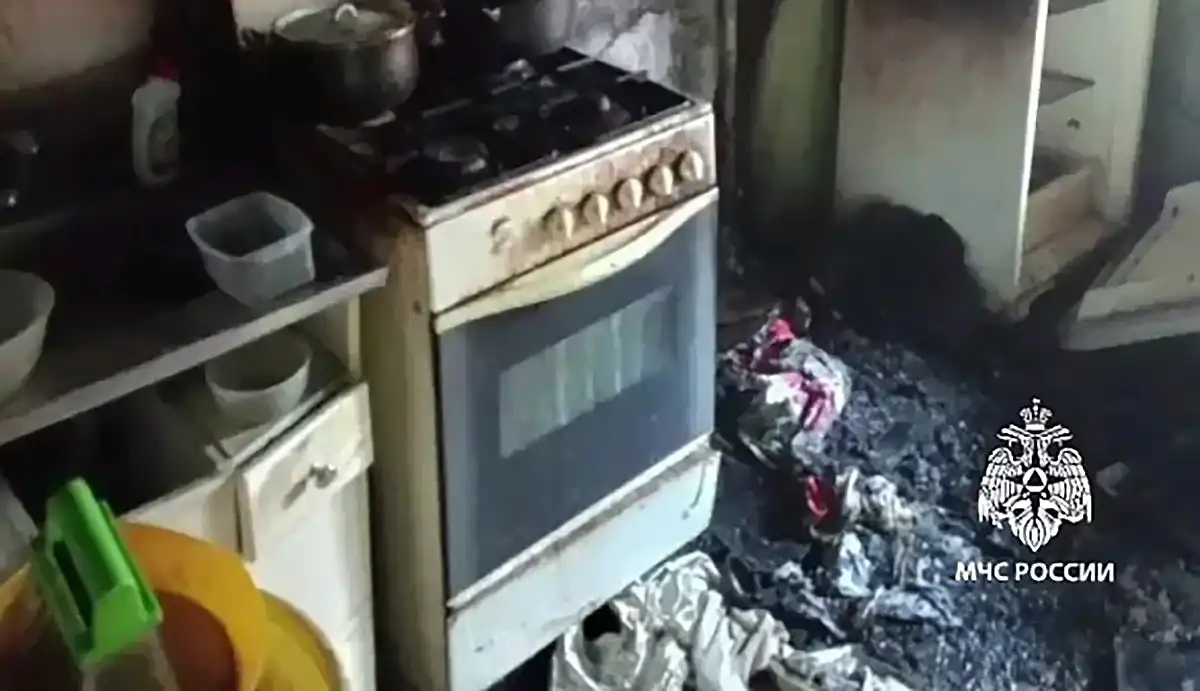 Пожарные при помощи спасательной маски вывели из горящей квартиры женщину. Причину возгорания установят дознаватели Госпожнадзора.