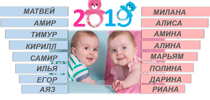 За прошлый год самыми популярными именами стали: Матвей, Амир, Тимур, Кирилл, Милана, Алиса, Амина, Алина, Марьям.