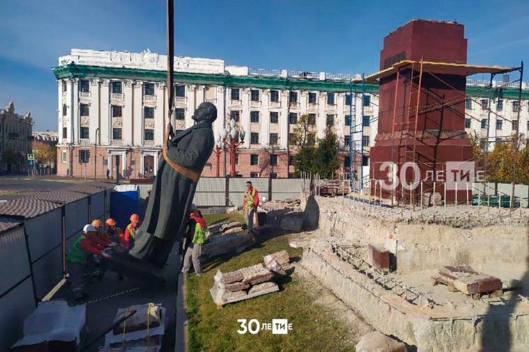 В воскресенье на площади Свободы в Казани сняли с постамента памятник Владимиру Ленину.