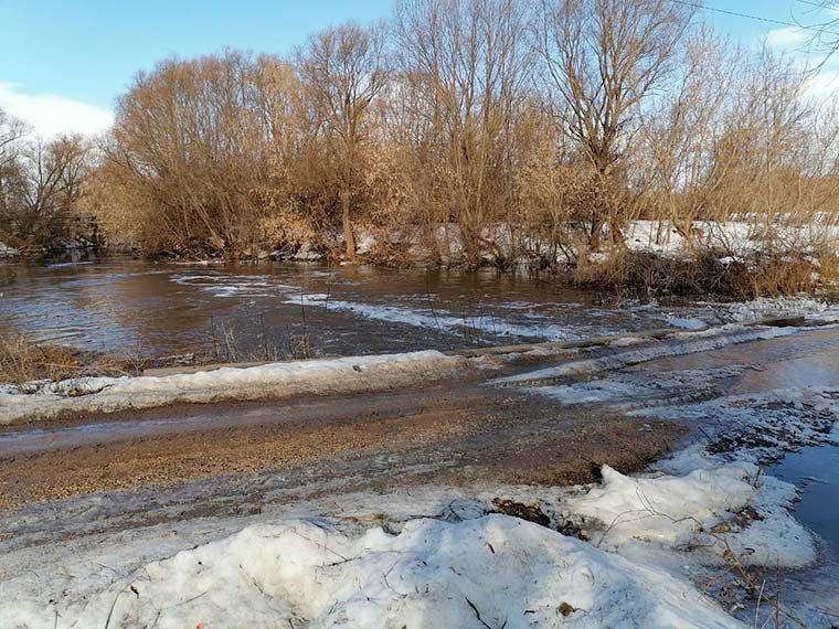 В Буинском районе Татарстана из-за активного таяния снега на реке Свияга подтопило два моста: около села Кият и села Черки-Кильдуразы.