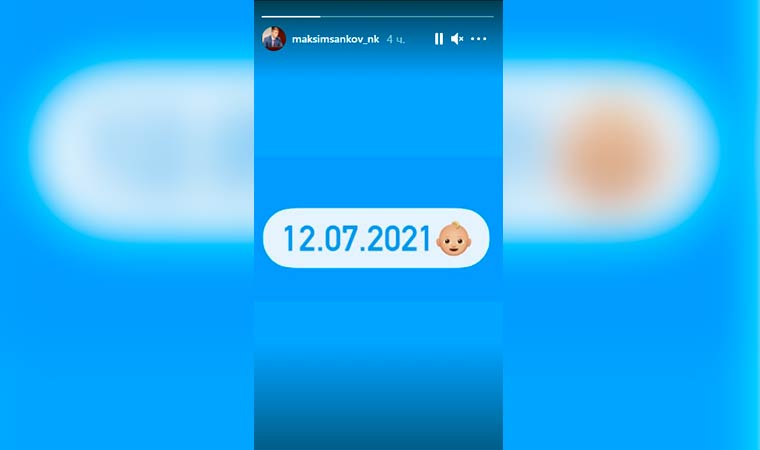 О пополнении в семействе Максим Санков сообщил в своем Инстаграм, написав коротко в сторис: «12.07.2021 ?»