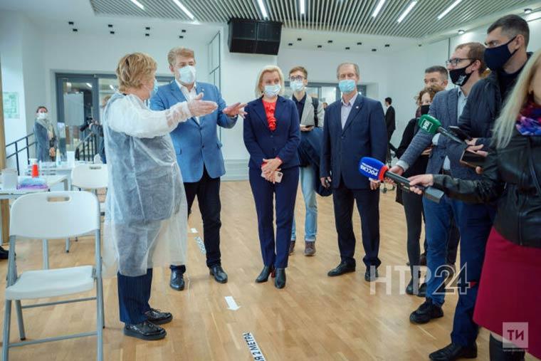 Главный санитарный врач Татарстана Марина Патяшина и председатель ЦИК РТ Андрей Кондратьев рассказали о новых антикоронавирусных мерах, применяемых на избирательных участках.