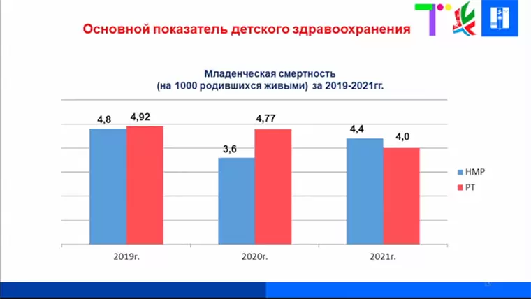 В 2021 году показатель младенческой смертности в Нижнекамском районе составил 4,4 промилле. Этот показатель повысился на 22% по сравнению с 2020 годом.