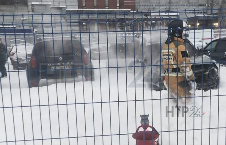 В промзоне Нижнекамска на территории шинного завода горит автомобиль.