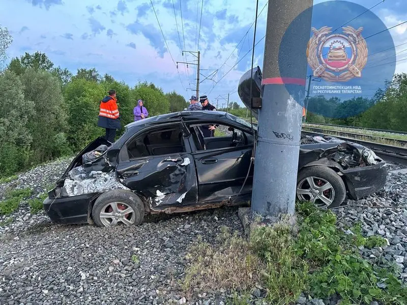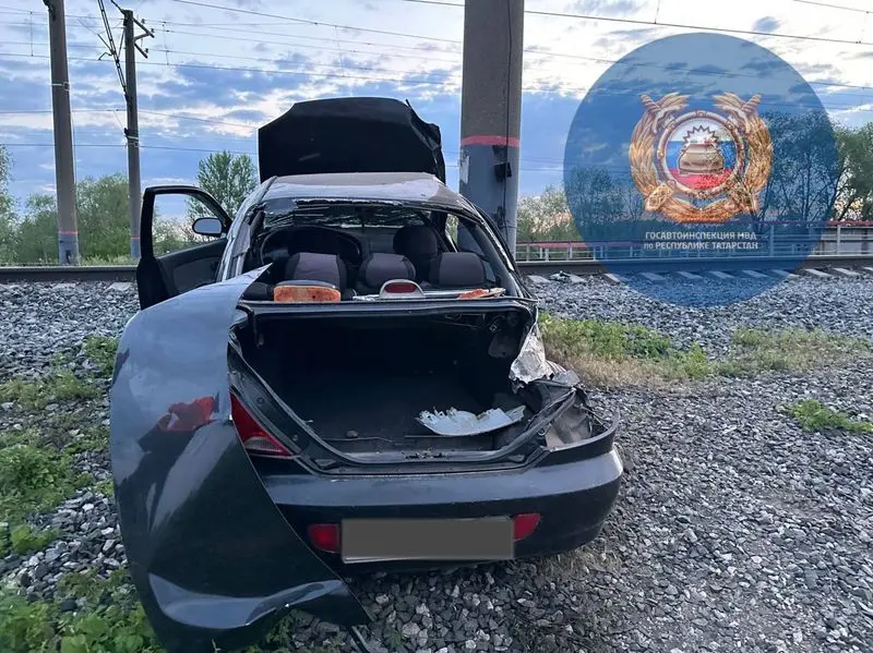 Спустя какое-то время в машину врезался локомотив. Водитель не пострадал, сообщает пресс-служба госавтоинспекции Татарстана.