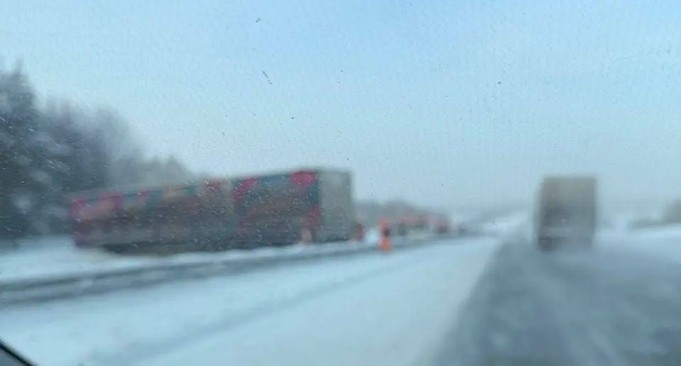 На трассе М-7 недалеко от Набережных Челнов фура перекрыла дорогу.