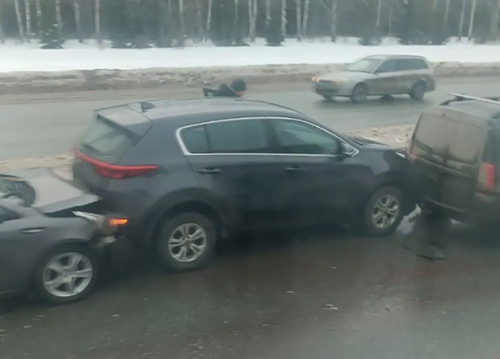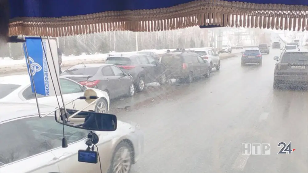 В Нижнекамске на улице Соболековской произошла авария с участием пяти автомобилей.