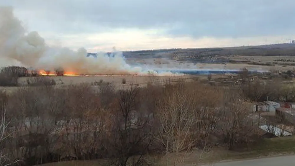 В Нижнекамске на поле возле улицы Береговой горит сухая трава.