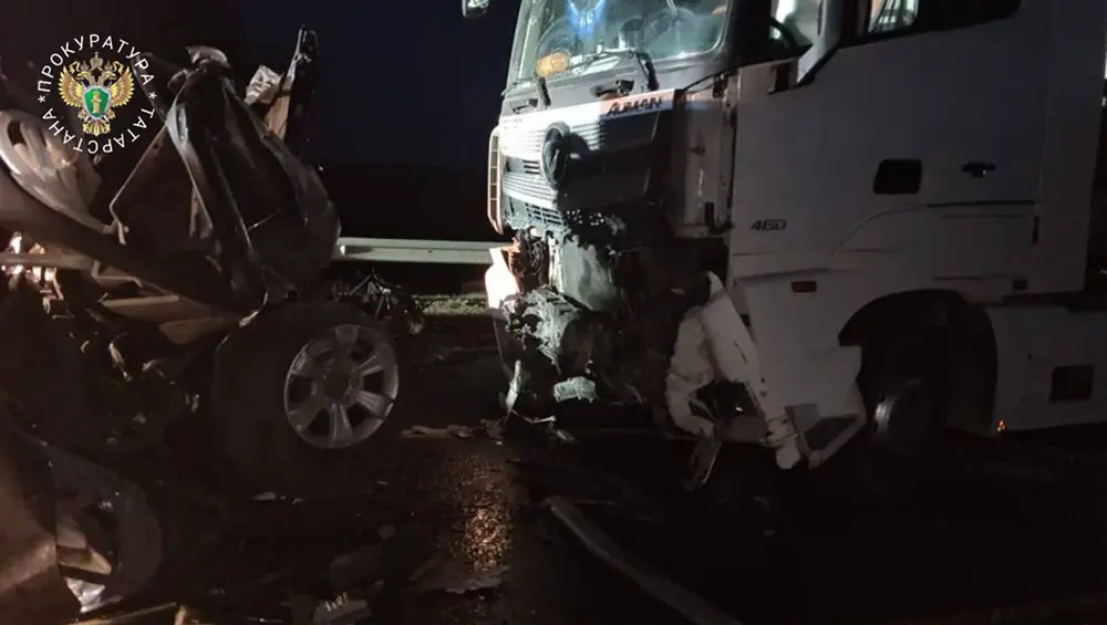 По предварительным данным, ночью 21 апреля на 58-м километре автомобильной дороги Р-241 «Казань — Буинск — Ульяновск» у населенного пункта Малые Кокузы водитель цементовоза FOTON, не выбрав безопасную скорость, совершил столкновение с автомобилями «Лада Веста», «КамАЗ» и Sollers ST6, стоящими у моста на запрещающий сигнал светофора.