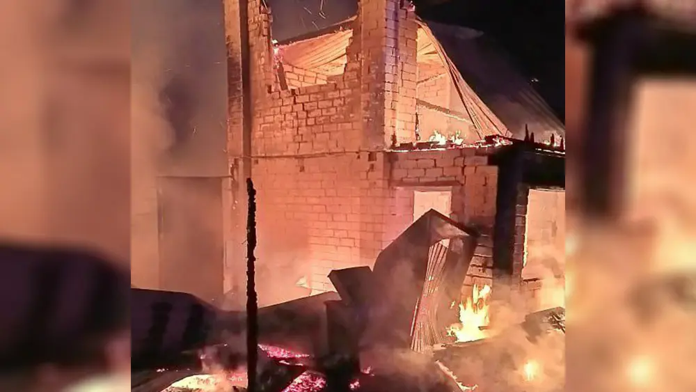 Возгорание произошло на территории садового некоммерческого товарищества «Урожай», где полностью выгорели двухэтажный кирпичный дом с деревянным пристроем и каркасная баня.