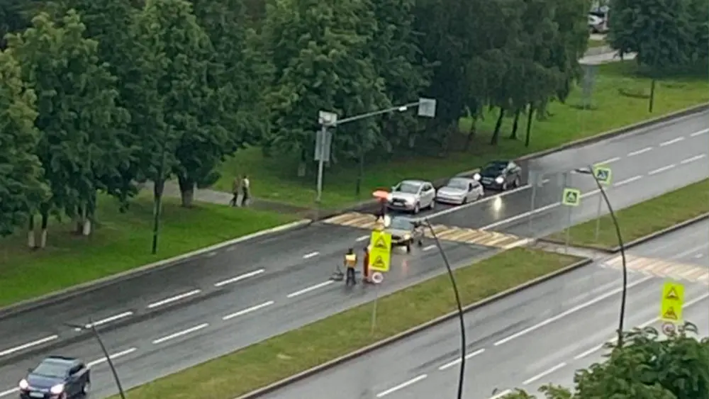По словам очевидцев, на пешеходном переходе водитель сбил ребёнка. Авария произошла вечером 4 июня. Ребёнок жив. Свидетели говорят, что у него рассечён лоб, но на ногах стоит ровно.