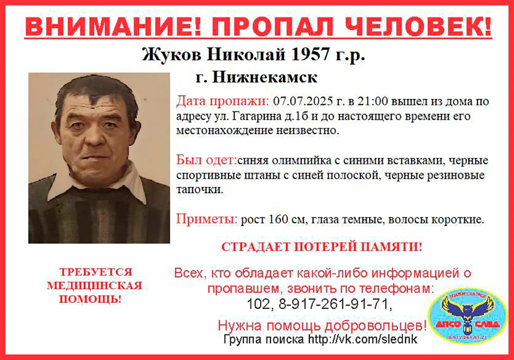 В Нижнекамске пропал 68-летний Николай Жуков.