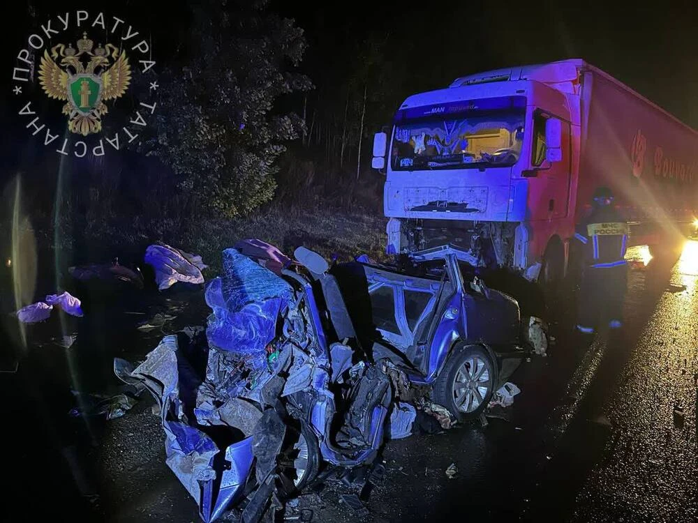 По предварительным данным пресс-службы прокуратуры республики, пятого сентября на автодороге «Набережные Челны — Альметьевск» автомобиль Daewoo Nexia без цели обгона выехал на встречную полосу и влетел в грузовик MAN.
