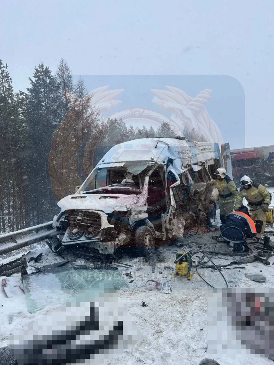 ДТП произошло около полудня рядом с селом Кичучатово. По предварительным данным, водитель «Нивы» вылетел на «встречку» и врезался в фуру Mercedes, после чего с большегрузом столкнулись Chevrolet, Haval и микроавтобус Ford.