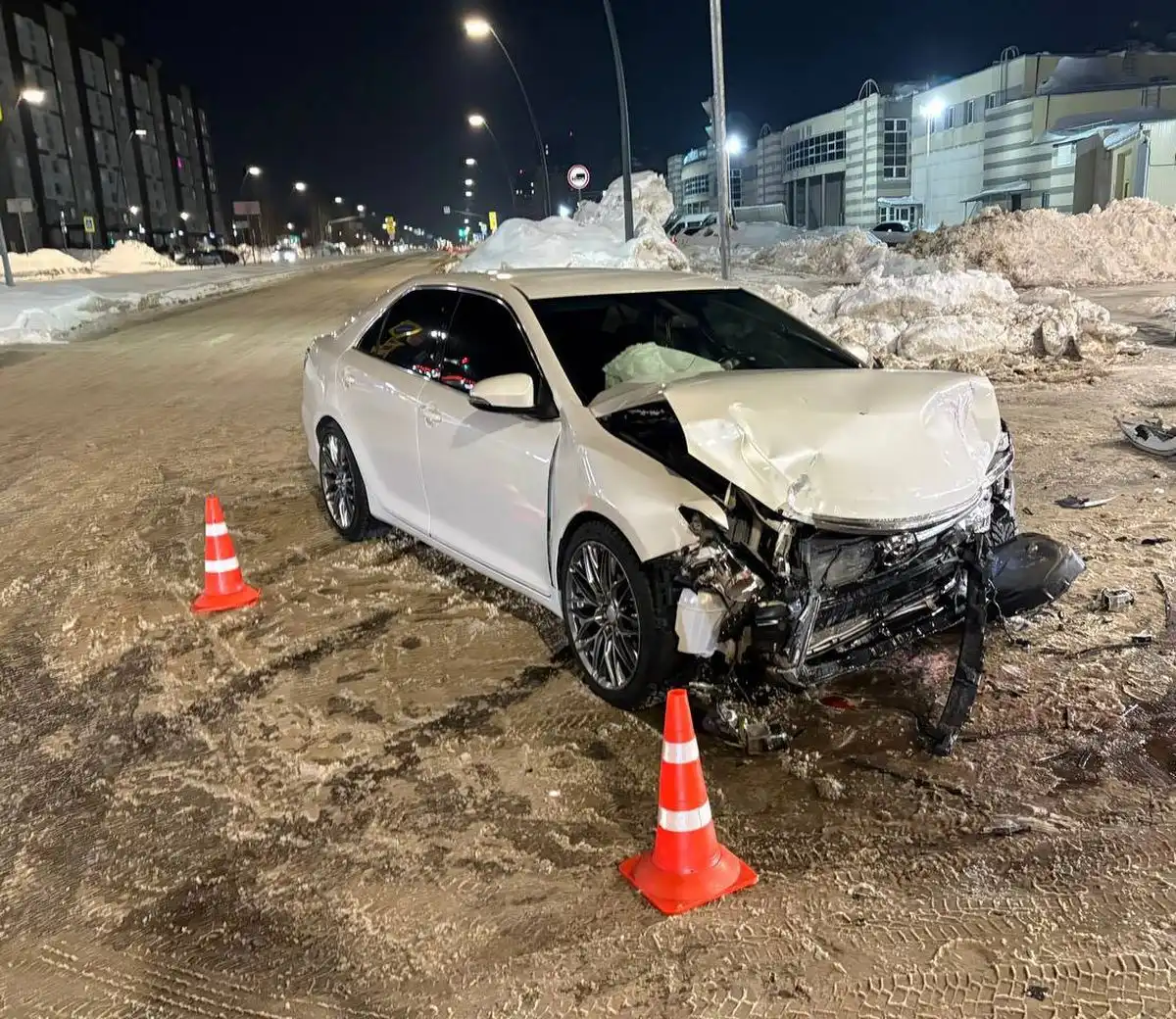 По предварительным данным, вчера в восемь вечера водитель Rav 4 1976 года рождения, двигаясь по проспекту Шинников со стороны Вахитова в направлении ул. Менделеева на регулируемом перекрёстке при повороте налево врезался в Camry под управлением водителя 1999 года рождения, который ехал со стороны Лесной в направлении ул. Менделеева.