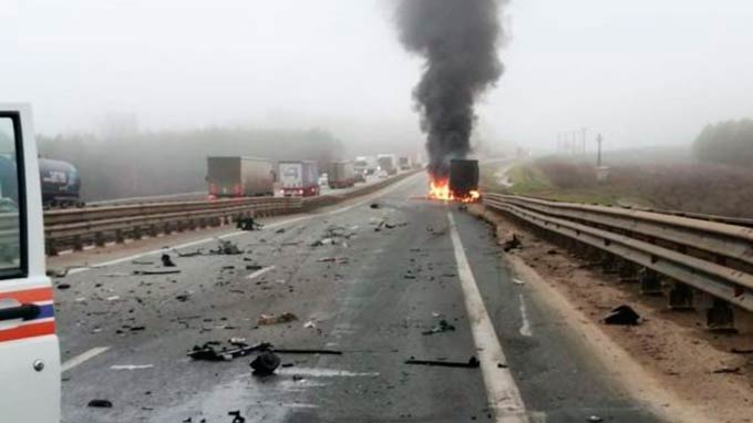 Здесь лоб в лоб столкнулись фура и легковушка.