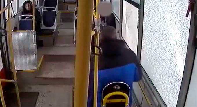 Во время движения автобуса в боковое стекло попала пуля. На стекле образовались трещины, а вот пассажиры, к счастью, не пострадали. Происходящее зафиксировали камеры видеонаблюдения, которые находились в салоне автобуса.