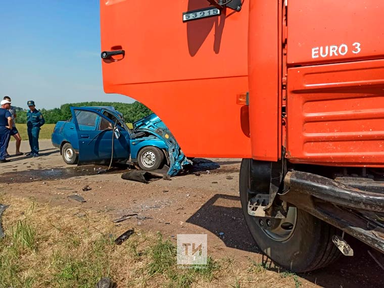 В Татарстане произошло лобовое столкновение «КамАЗа» и «десятки».