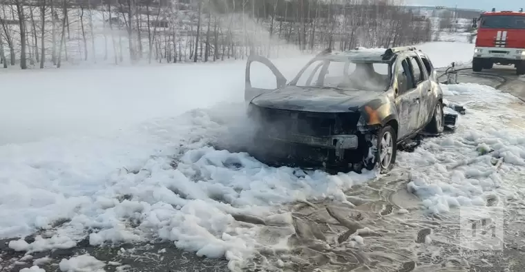 Накануне на трассе в Альметьевском районе Татарстана дотла сгорел внедорожник «Renault Duster».