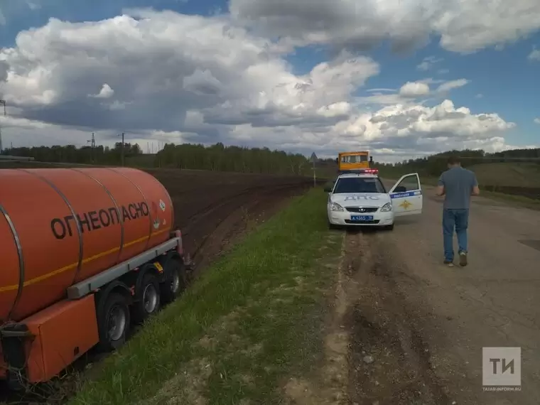 В Бавлинском районе Татарстана бензовоз вылетел с трассы.