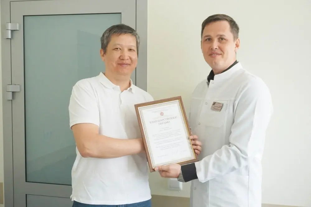 Исполняющий обязанности главного врача Руслан Гараев вручил Сыргаку Иманкулову благодарственное письмо, отметив его активную жизненную позицию, высокий профессионализм и преданность делу.