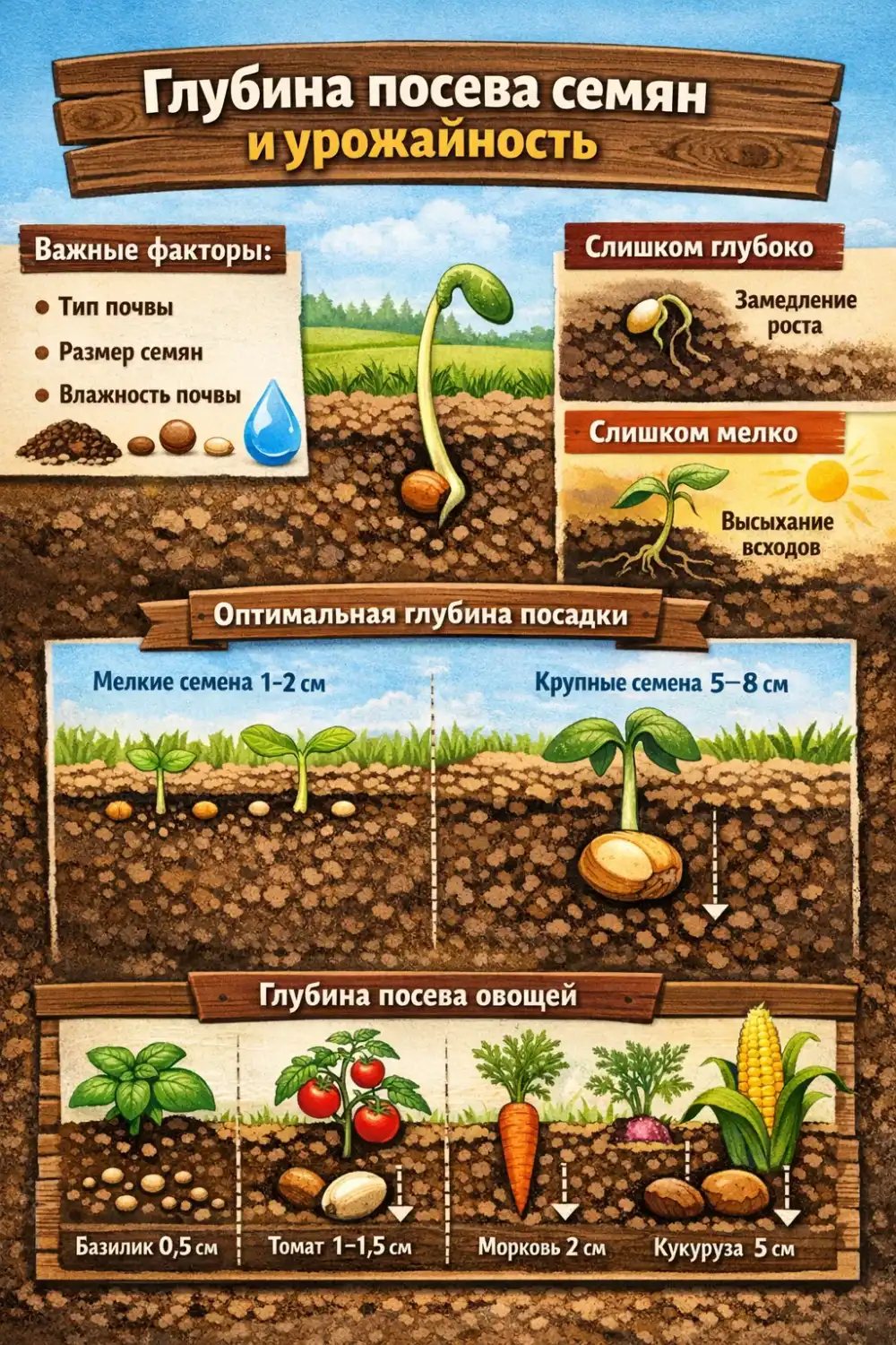 Правильная глубина посева — это основа успешной технологии выращивания овощей. Именно на этапе посева закладывается потенциал будущего урожая.