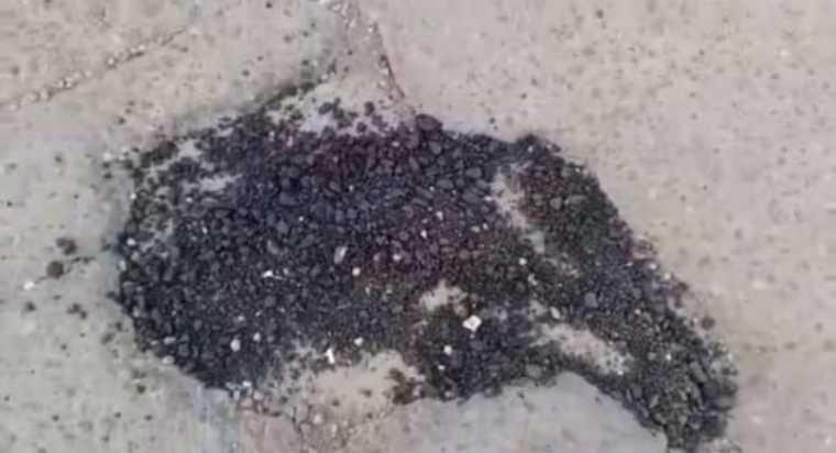 Вместо того, чтобы залатать яму, в нее просто насыпали асфальтную крошку.